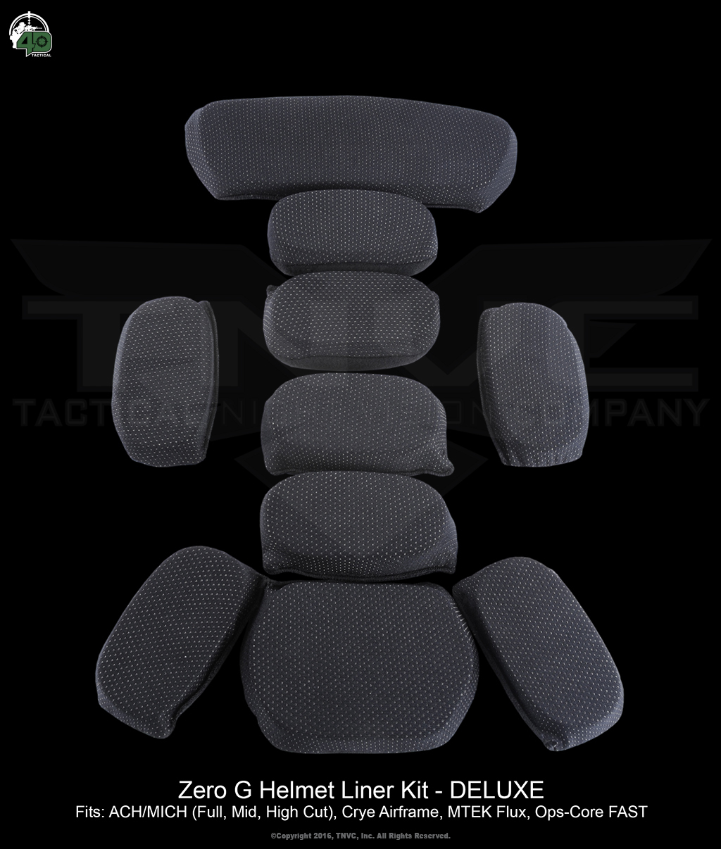 The Zero G Deluxe Retrofit Combat Liner was spec’d with input from TNVC to be the ultimate in warfighter comfort and protection. Based on 4D Tactical’s excellent Zero G Standard Kits, the Deluxe Retrofit Combat Liner contains more pads for more complete coverage. All pads are independent of each other for complete customization and compatibility with other head-borne mission critical gear. Once installed, the pads conform to each other, creating the feeling of a single, soft insert, eliminating hot spots of pad contact during extended wear.