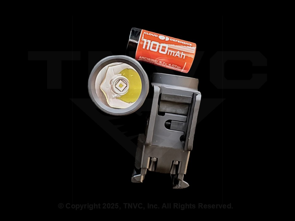 The EPL Duty is designed for button-top, protected 18350-C batteries to ensure peak reliability and performance. Battery changes can be made through the front of the light by simply unscrewing the head. No need to remove the light from your pistol.
