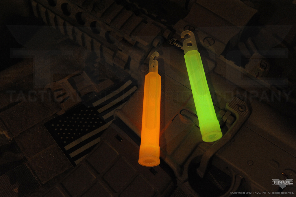 These 4” Chemlights© are popular with Special Operations Forces who use them in various ways during missions. Because of their smaller size, more Chemlights© can be carried while taking up less room. Usually, Chemlights© are strung on a zip-tie, dangling in a bunch from an operator’s armor or belt. The zip-tie is run through the hole in the top of the Chemlights© body. This effectively secures them to the operator’s kit. When needed, simply twist them until the hole breaks, freeing the Chemlight© from the zip-tie, snap it and toss it. 4” Chemlights© also feature a molded hook to allow them to hang from 550 cord or other thin material.