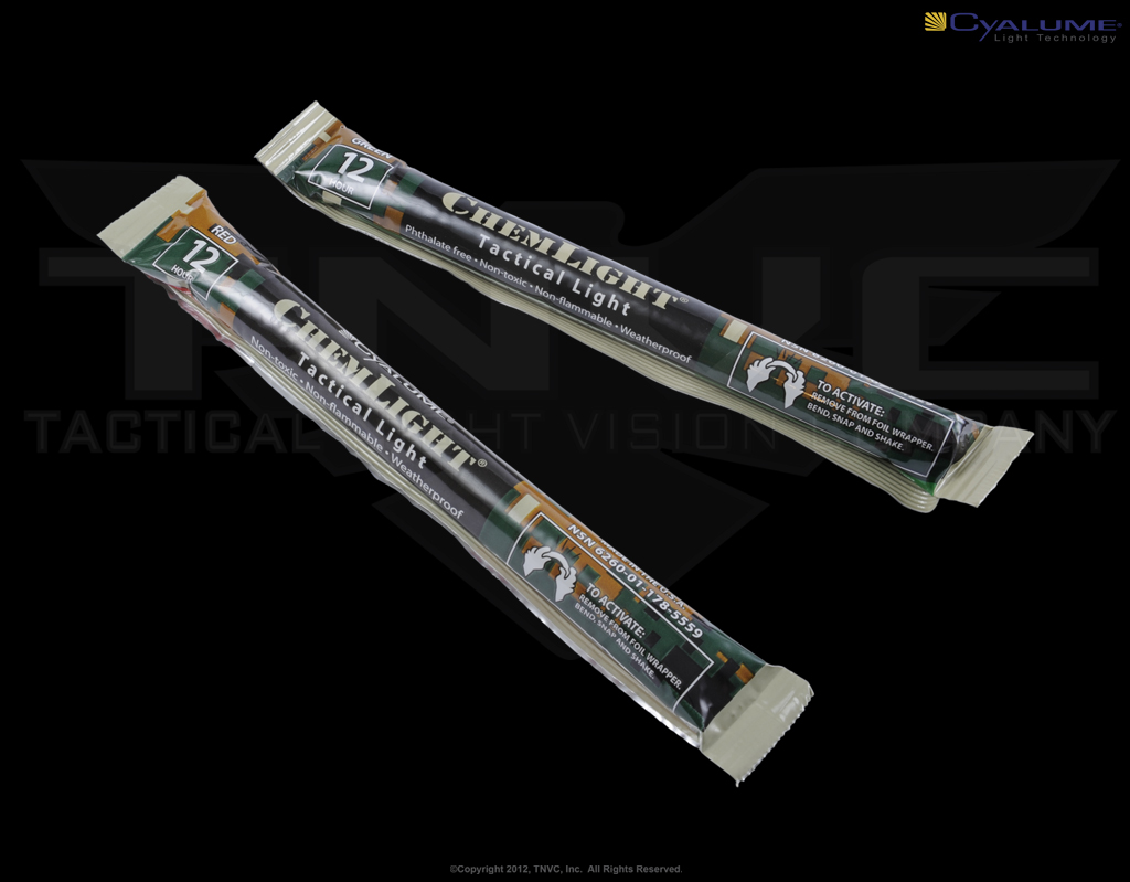 Cyalume Chemlights© are the only milspec chemical light sticks available on the market. These 6” Chemlights© provide instant 360° illumination that can be seen up to a mile away. Chemlights© are used heavily by military, law enforcement, and first responders as marking devices. Their use potential is unlimited. To activate, simply bend, snap, and shake the tube. Cyalume Chemlights© meet Defense Logistics Agency (DLS) and NATO Maintenance and Supply Agency (NAMSA) specifications. Each Chemlight© comes individually sealed in protective foil for protection from light and moisture, giving them up to a 4-year shelf life from date of manufacture.