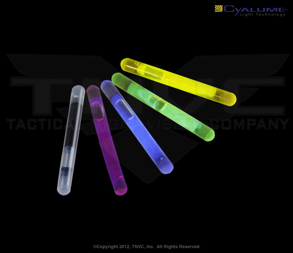 Cyalume Chemlights© are the only milspec chemical light sticks available on the market.  These 1.5” Chemlights© provide instant 360° illumination that can be seen up to a mile away.  Chemlights© are used heavily by military, law enforcement, and first responders as marking devices.  Their use potential is unlimited.  To activate, simply bend, snap, and shake the tube.  Cyalume Chemlights© meet Defense Logistics Agency (DLS) and NATO Maintenance and Supply Agency (NAMSA) specifications.  Each Chemlight© comes individually sealed in protective foil for protection from light and moisture, giving them up to a 4-year shelf life from date of manufacture.