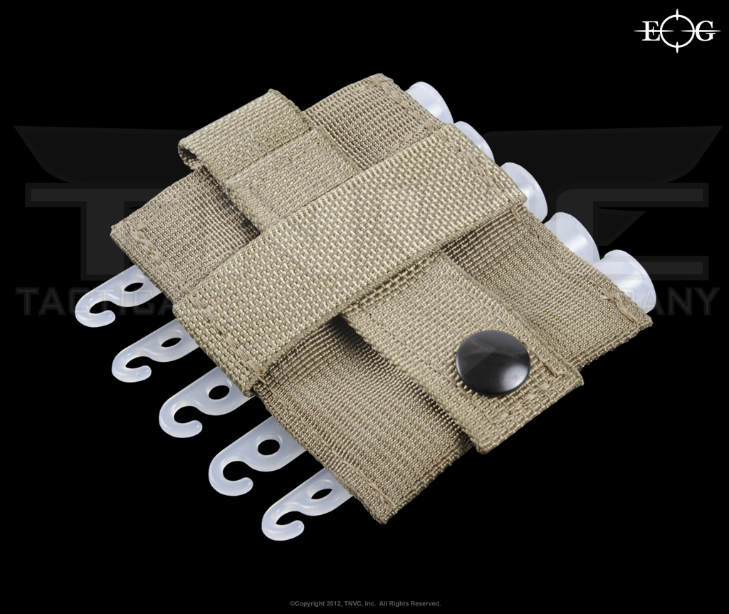 Mini Chemlights are used heavily by Special Operations units for various tasks on mission. There are many ways to carry them, but none of them offer fast access. The EOG Mini Chemlight Holder – MOLLE Version attaches to any PALS webbing and securely holds five mini (4″) Chemlights in tight elastic loops. Chemlights are easily accessed in any environment and under all circumstances. The elastic loops are quite tight for a secure hold, but can still be easily pulled out with a deliberate motion.