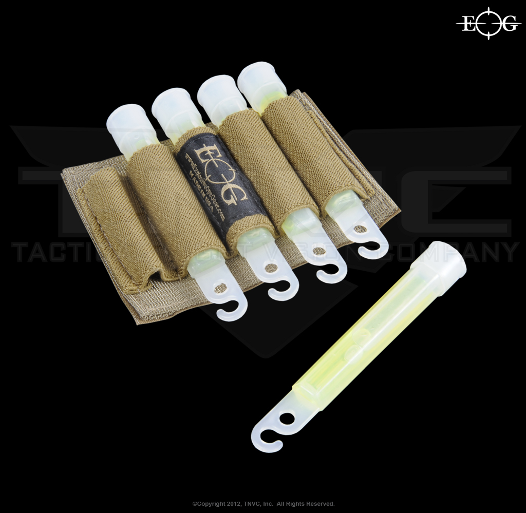 Mini Chemlights are used heavily by Special Operations units for various tasks on mission. There are many ways to carry them, but none of them offer fast access. The EOG Mini Chemlight Holder attaches to any Velcro pile tape surface and securely holds five mini (4″) Chemlights in tight elastic loops. Chemlights are easily accessed in any environment and under all circumstances. The elastic loops are quite tight for a secure hold, but can still be easily pulled out with a deliberate motion.