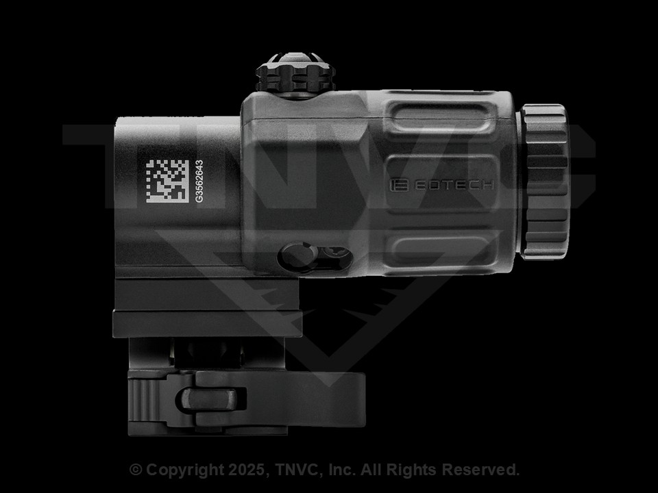 This is the 3rd Generation of EOTECH magnifiers. It offers more eye relief with windage and elevation adjustments that can be manipulated by hand, without any tools. The new slap to side mount is incredibly durable and operates with the slap of your hand, knocking the mount to the side. The G33 also offers a locking, quick detach lever for easy attachment and removal of both the optic and the mount. This magnifier aligns perfectly with standard height sights and comes with a 7mm riser to accommodate the 7mm raised sights.