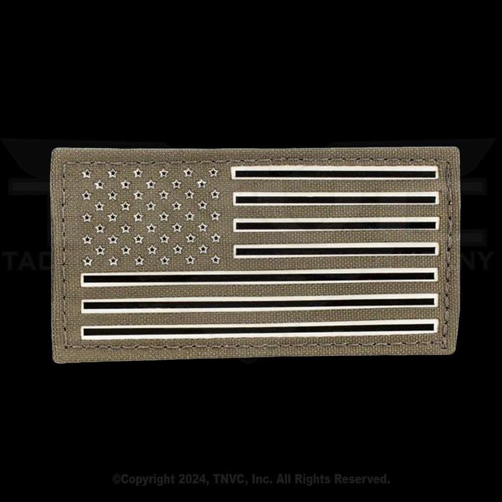 FirstSpear Infrared Reflective Cell Tag U.S. Flags are Velcro-backed for attachment to tactical gear and clothing. They are IFF devices that identify personnel under normal lighting conditions and glow brightly when viewed under night vision goggles and hit with infrared light. FirstSpear has developed a patented new process that bonds IR reflective material with regular fabric to greatly reduce the sheen associated with legacy IFF patches. This helps provide a lower profile to operators and increases the camouflage properties of the patches because the surrounding fabric color can better match uniforms.