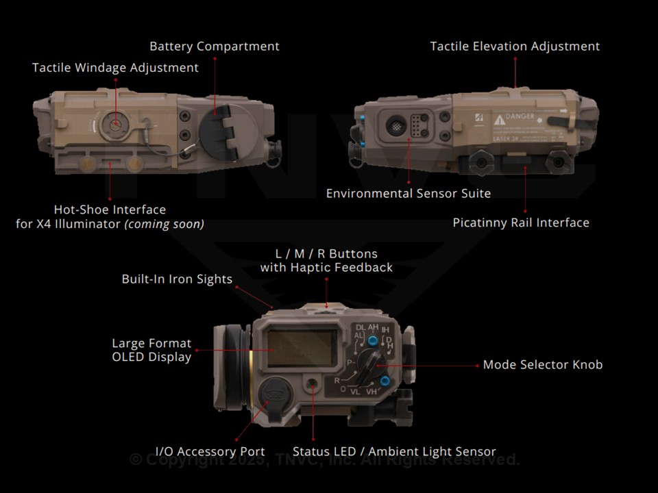 The X4-LRF⢠is a high-performance ranging laser with co-aligned visible and infrared aiming lasers.