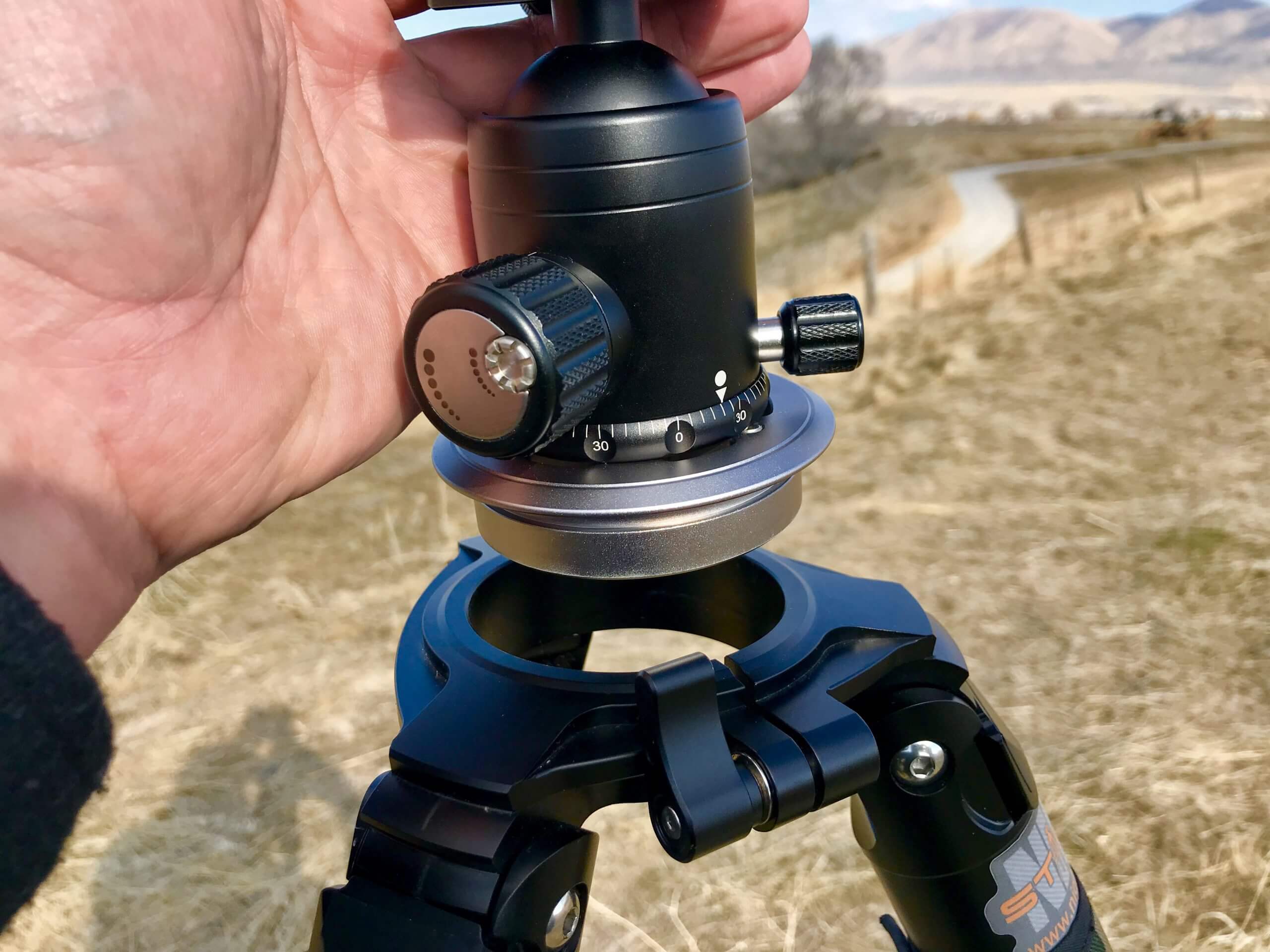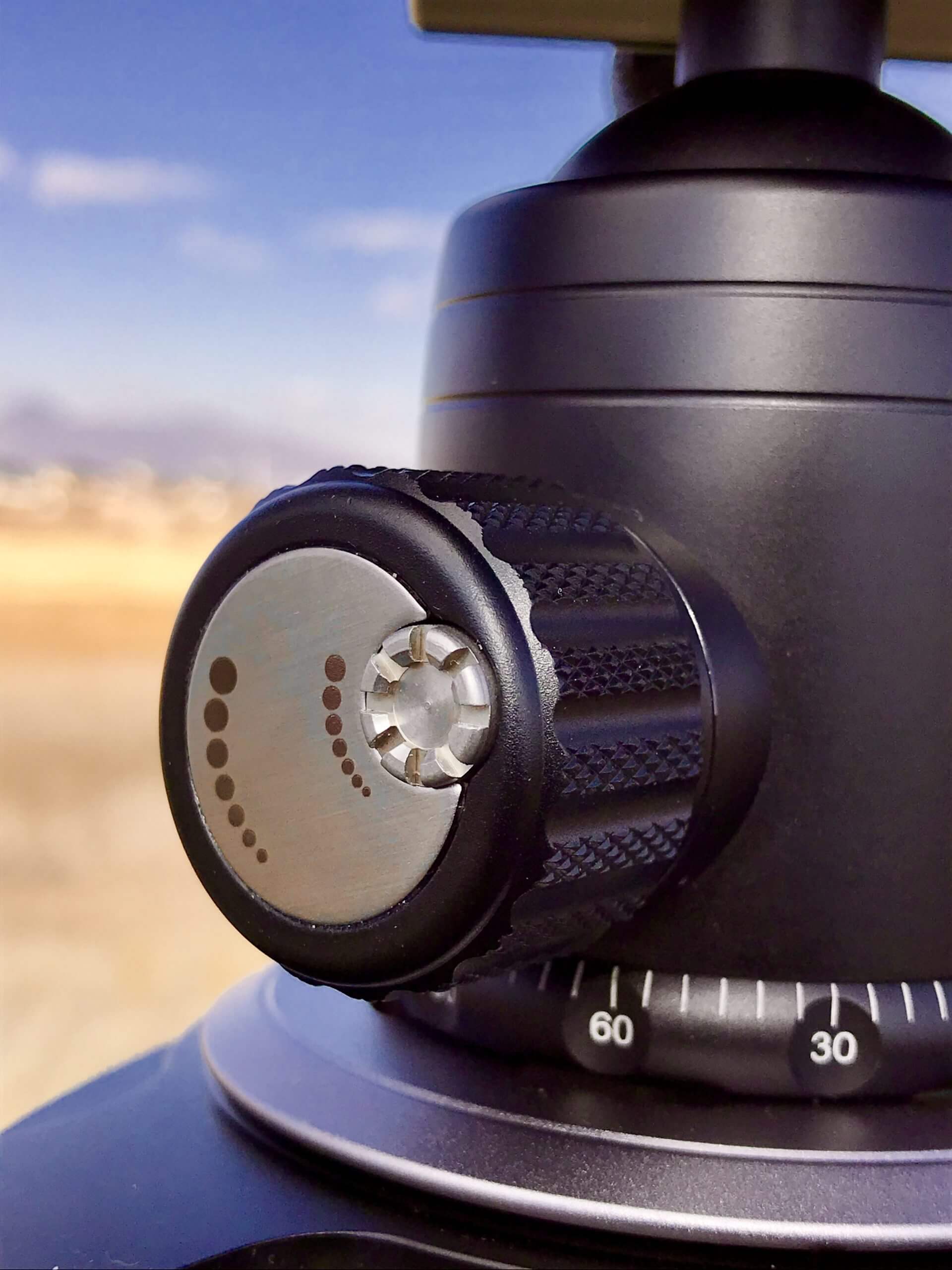 - Level adjustment knob with tension screw and 360°dial, convenient for panoramic shooting.