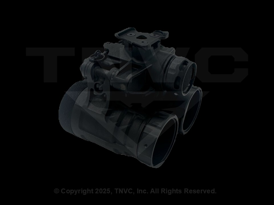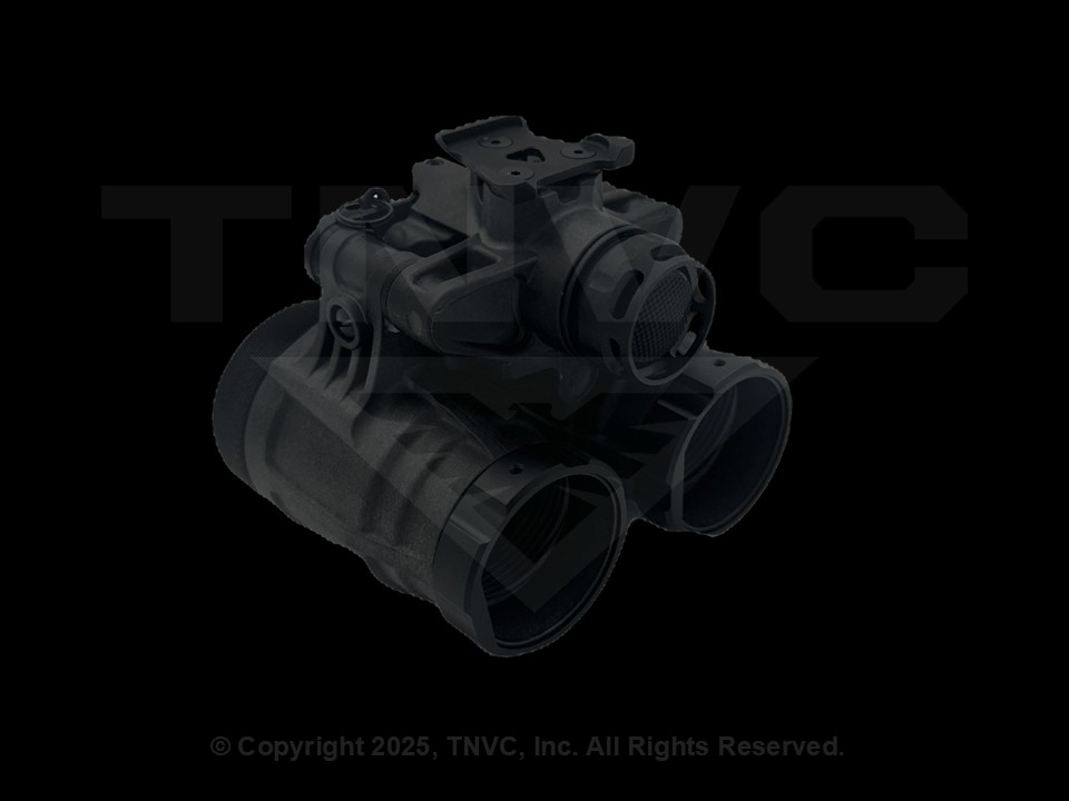 The TN/ANVB-R (Auto Gain Night Vision Binocular)/ Nocturn Katana-R is a articulating binocular housing made of high strength aerospace grade 7075-T6 aluminum. Using advanced multi-axis CNC machining an ultra lightweight and robust design is achieved, including an optimal single piece pod geometry. This BINOD (Binocular Night Observation Device) includes features such as individual pod stow shutoff, IPD stops, user adjustable pod tension, and low battery indicator. The device is powered on-board by a single CR123A for a continuous runtime of ~25 hours, and equipped with a LEMO port for external power pack use to achieve extensive run time
