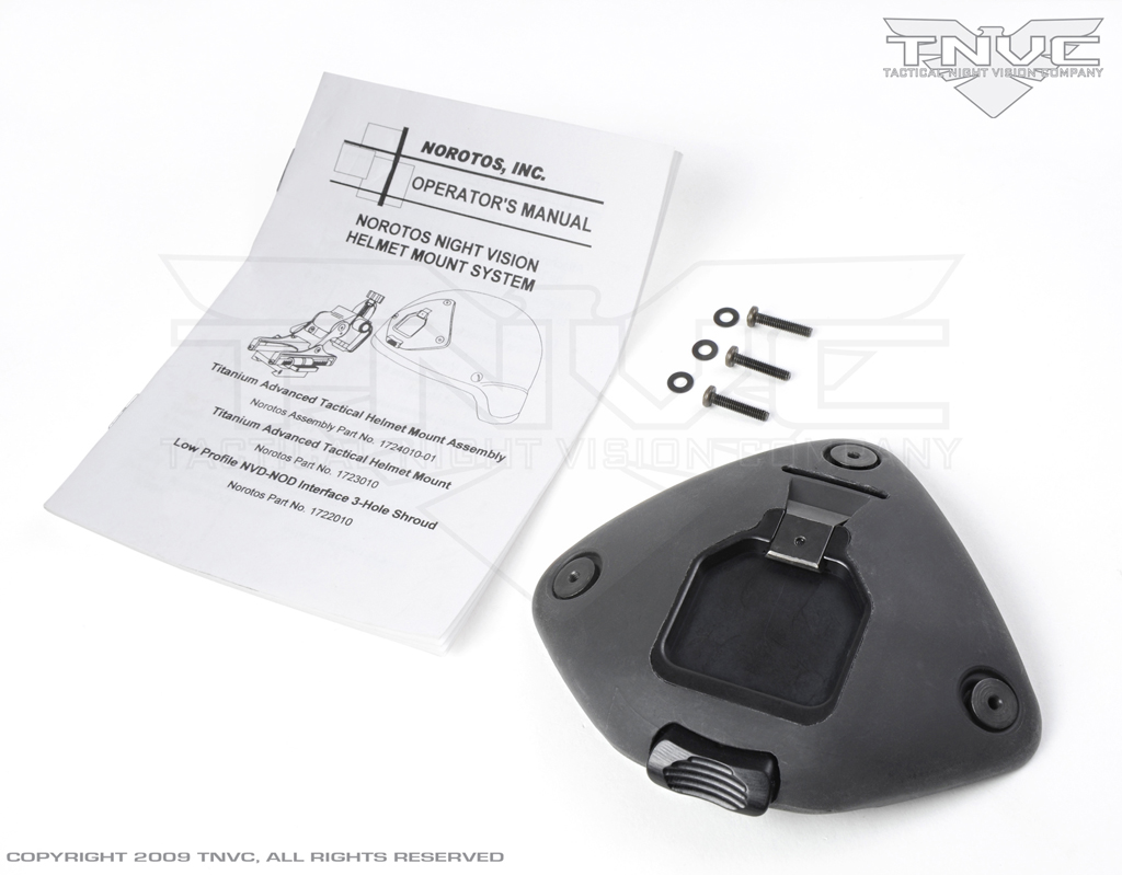 The 3 Hole Shroud is secure and operationally sound. The unit itself is extremely low profile with no sharp edges to snag risers during airborne ops. In fact, unless it goes against your SOP, the shroud does not need to be taped for a jump. Although it requires a proprietary interface for the mount, current standard issue USGI Rhino Arms can be retrofitted with Norotos 2 Hole Titanium Conversion Plates to easily work with this unit (a logistical bonus because it will allow your unit to replace their old, worn out or broken MICH or PASGT Plates without having to invest in an entirely new system). It will also take the Norotos TATM and TATM(Large Arm) mounts right out of the box. Other Norotos mounts can be adapted to fit using Norotos-manufactured conversion plates (if you are confused as to which conversion plate to get, please call us and we will get you squared away).
