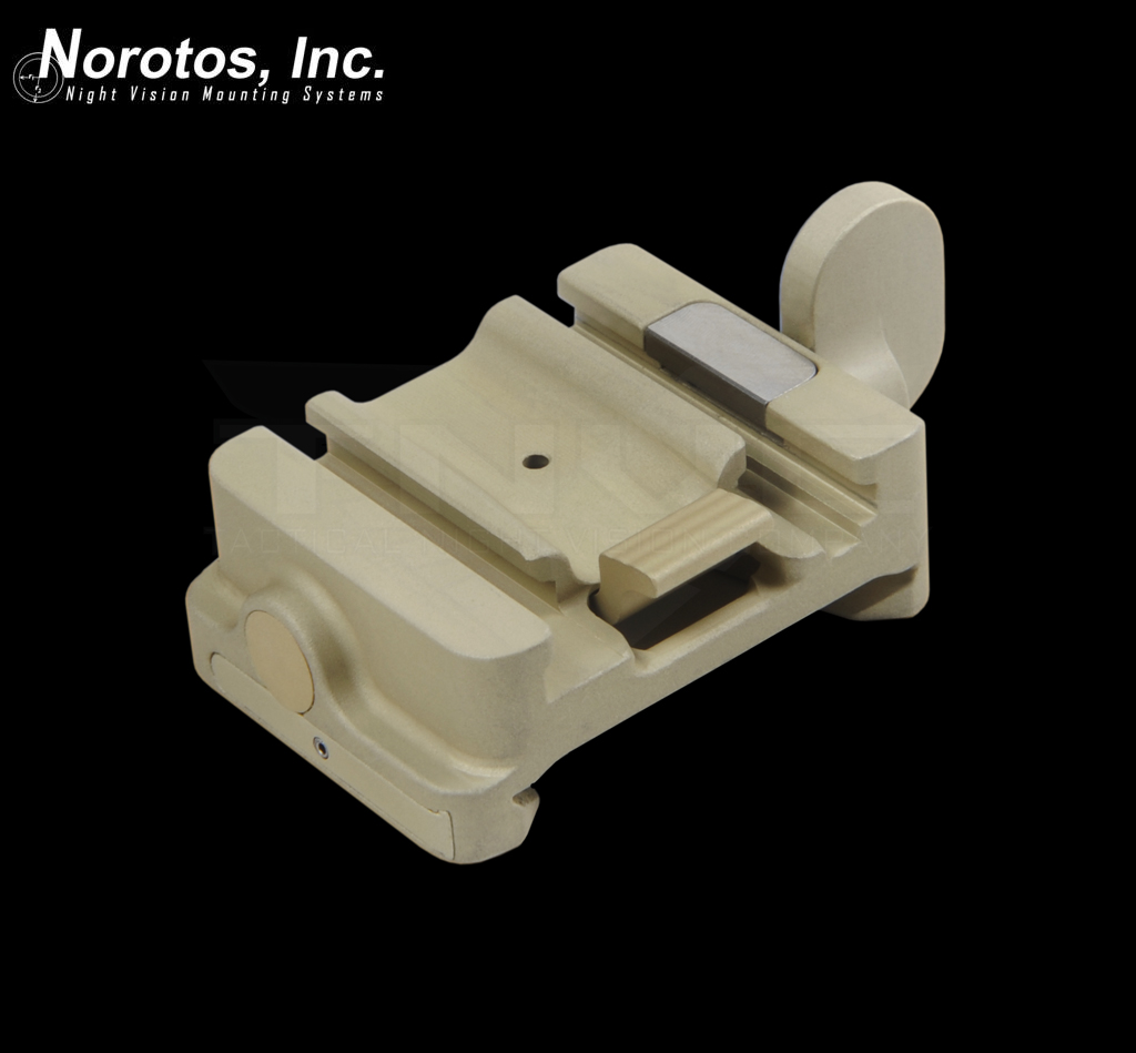 The Norotos PVS-15 Socket is a replacement interface for the Norotos AKA2 that will accept any dovetail style NVG devices including the PVS-15,18,21, or PVS14 with Norotos Dual Dovetail Mount or Wilcox PVS14 Arm. The PVS-15 Socket is a precision built interface with tight tolerance held to parts. It provides a very tight fit dovetail interfaces which helps reduce wobble. Please note the Norotos PVS-15 Socket is designed to fit the AKA2 specifically, and will not work with any other mounts.