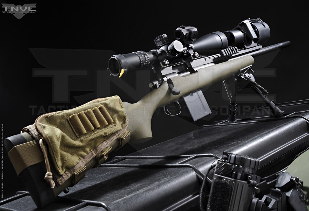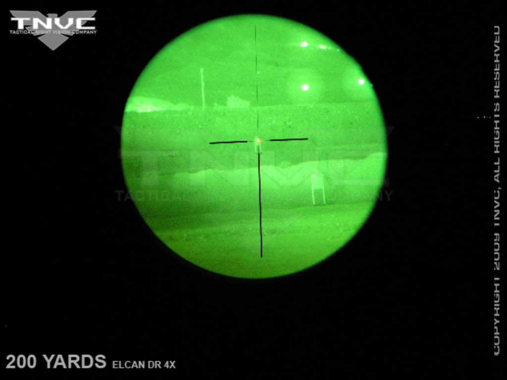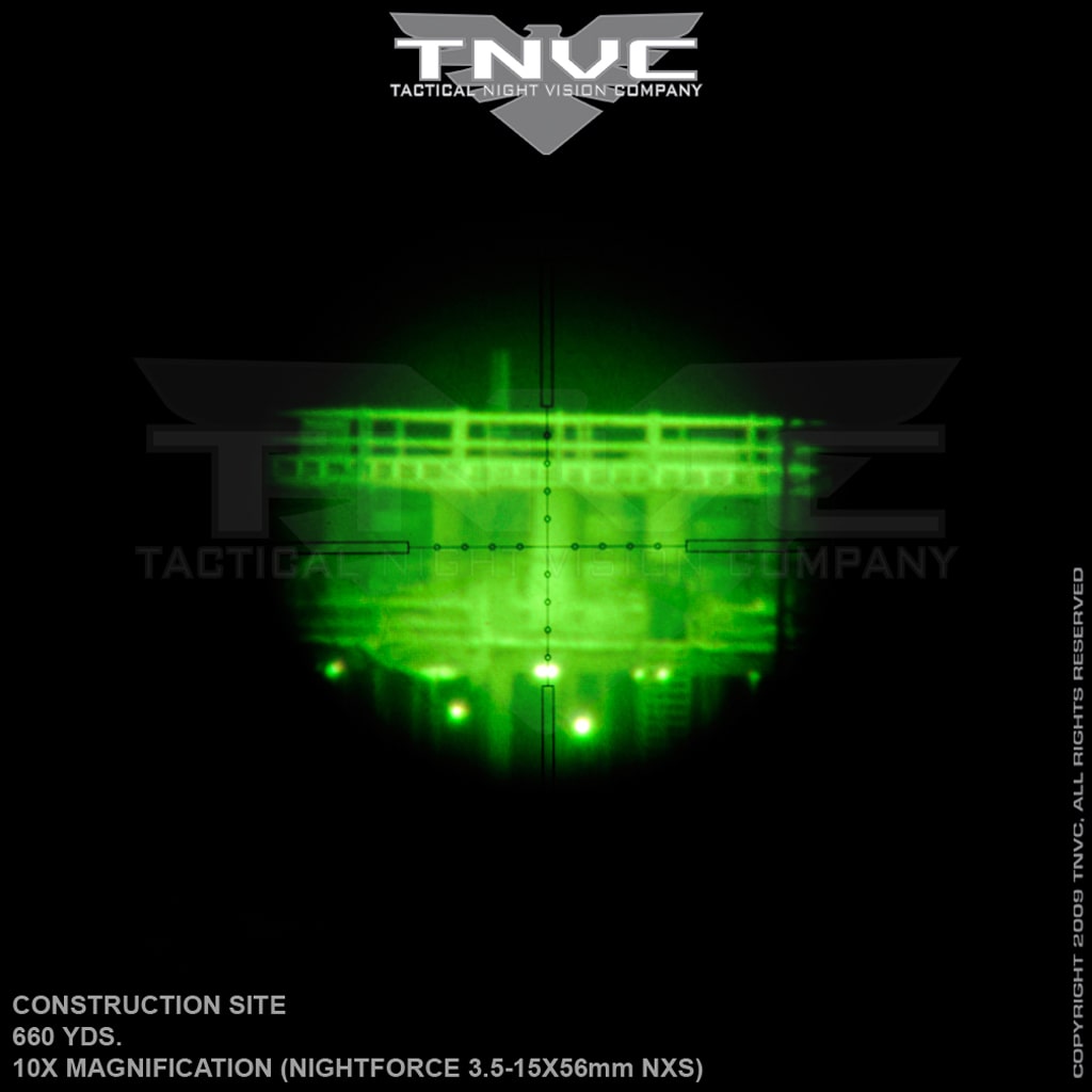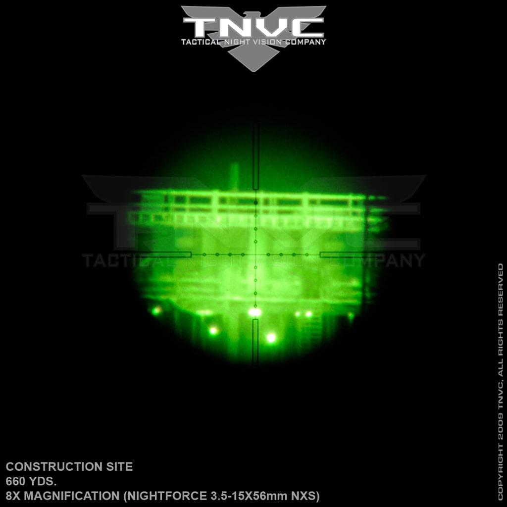We have used the AN/PVS-22 extensively in the field. This UNS is the real deal PVS-22 developed by OSTI and now produced by FLIR and issued to US Forces around the world in the Global War on Terror. Indeed, we get many reports about how these units greatly contribute to terrorists having very bad nights! We have found that the image quality averages highest at about 10x, but will make it to 12x depending on the quality of glass being used behind it. This is an important factor in resolution when deploying the AN/PVS-22. Whenever you stack optics in front of each other, you will assume some image degredation. We have snapped pics behind some various optics such as the Leupold MKIV, Trijicon ACOG NSN, and Elcan Specter DR. In our opinion, the AN/PVS-22 UNS is one of the most versatile units on available. The ability to clip the unit in front of the already-zeroed day optic is extremely advantageous since it means a unit or department does not need to keep certain rifles dedicated to night operations. The adjustable gain gives your military or LE unit a step above commercial tube systems, especially in urban environments where the halo effect is reduced and resolution is enhanced versus commercial I2 systems.