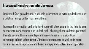 SuperGain is the latest image intensifier tube technology from L3Harris and introduced to the commercial market by TNVC, and is one of the most significant evolutions in Generation 3 night vision systems and performance since the introduction of Unfilmed technology.