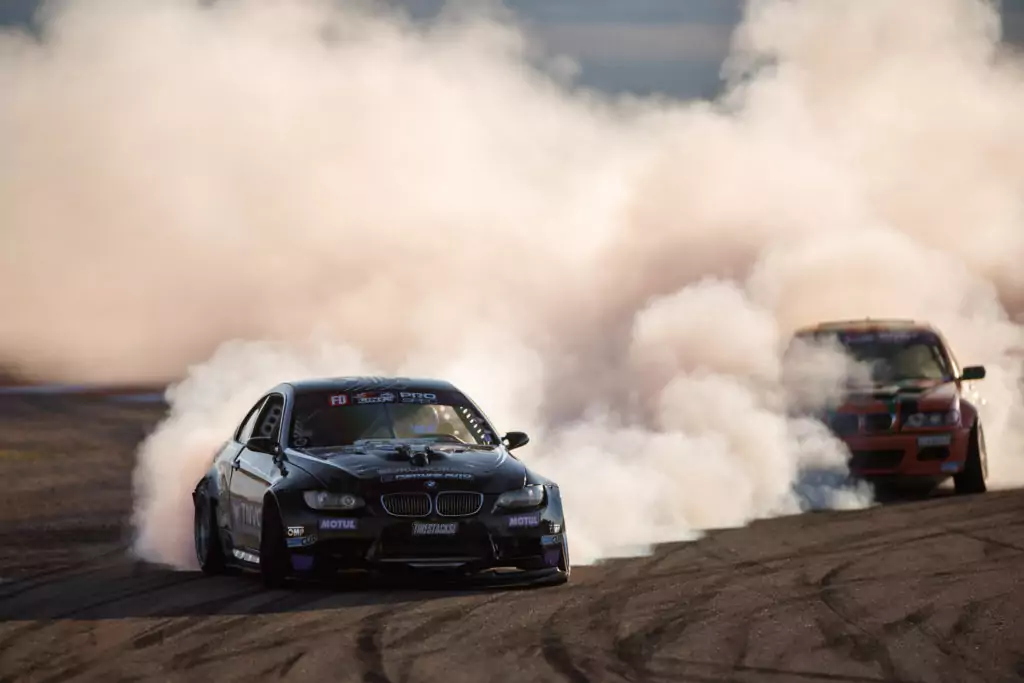 After a little over an hour and a few hundred signatures I drove the car out to driver introductions then into top 16. My next opponent is Tommy Lemaire, a very good driver and 3x Canadian Champion. He qualified better than me so he leads first. On the run up, his trunk comes unlatched and flies open. As this happens I hesitate and lose my rhythm. By then he builds a gap and going into the last outer zone I get lost in his smoke and drop wheels. As we cross the line I tell Gregg about the trunk as this is a big rule and last season a similar event cost my teammate Nick Noback the championship. Moving into our second run, I lead and once again lay down a near perfect lap. He chases me well, just misses a couple zones. Before I make it back to the line the judges had already declared him the winner due to my mistake in the chase. A mix of emotion flooded me, and I made the decision to file a formal petition on the basis of his trunk coming undone with the hopes that we could run again. We throw tires on the car and just sit and wait. Very seldom do these petitions ever go through. After about 20 minutes of accepting defeat, Gregg calls me on the team radio and screams that we advance to the top 8! The judges agreed that was in line with the rules, essentially giving him a zero on his lead run, and solely going off of run 2 where I ran a great lead run. I never expected this outcome, and hate winning this way, but I’m so accustomed to having bad luck, that when the good luck comes around you have to take it.